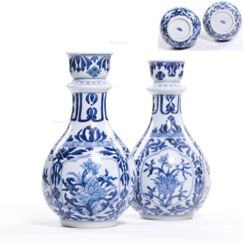 清康熙 青花开光花卉紋碗口瓶一對 詳細介紹以及工藝和歷屆拍賣會成交記錄
