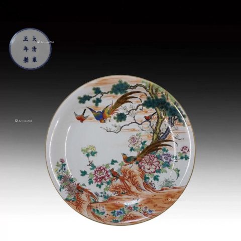 清 描金琺瑯彩錦雞富貴福壽三多紋賞盤詳細介紹以及工藝和歷屆拍賣會成交紀錄