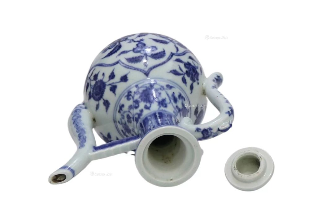 - 綜合裝飾技法:開窗折枝花卉採用雙勾填色技法,線條細膩流暢;纏枝蓮紋則以單筆勾勒為主,輔以分水渲染,形成疏密有致的畫面。流與柄的裝飾採用模印貼塑與青花彩繪結合,增強立體感。
