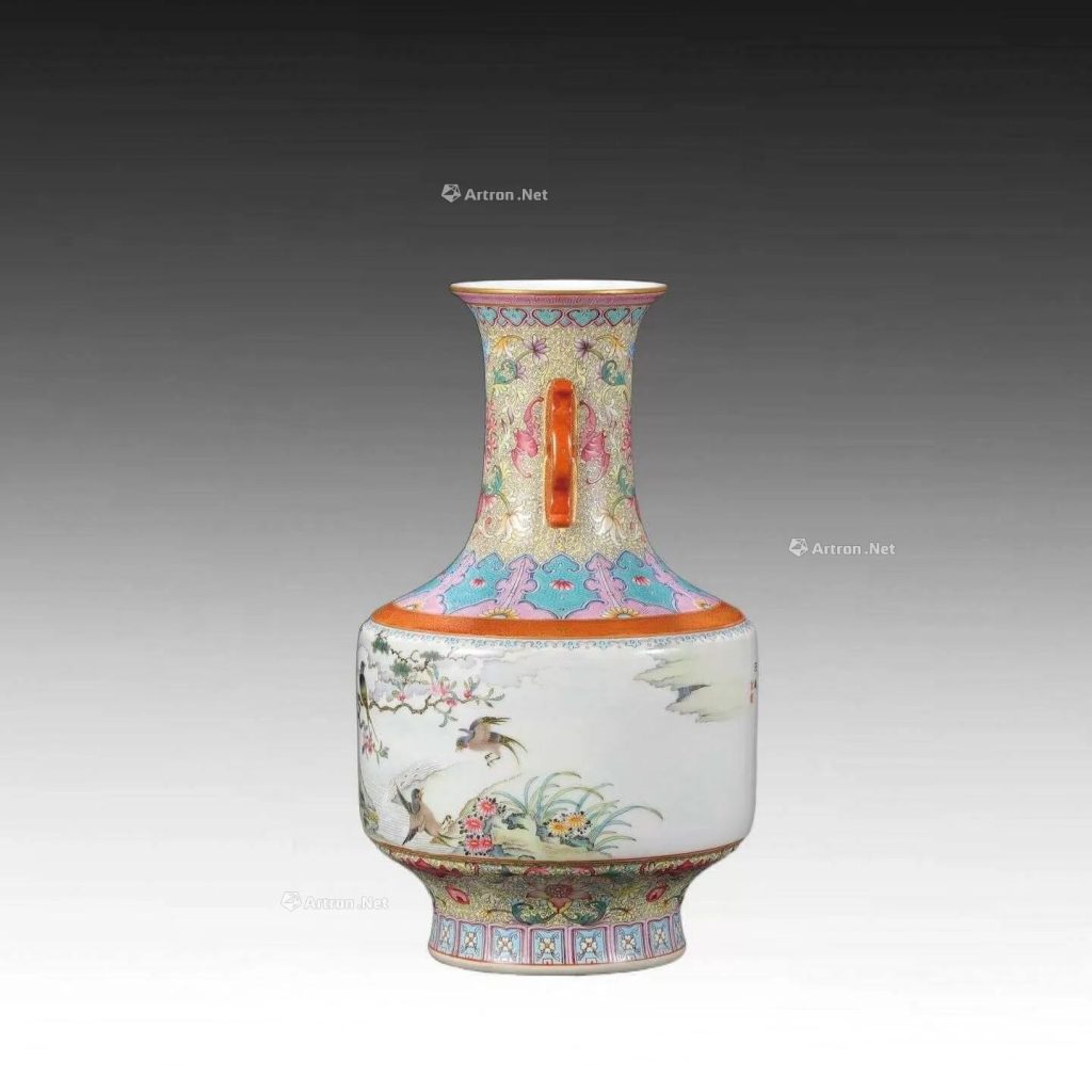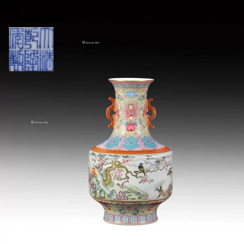 乾隆琺瑯彩花鳥紋雙耳瓶存世極少(全球僅數十件),精品多見於頂級拍賣行,以下為典型案例及市場分析: