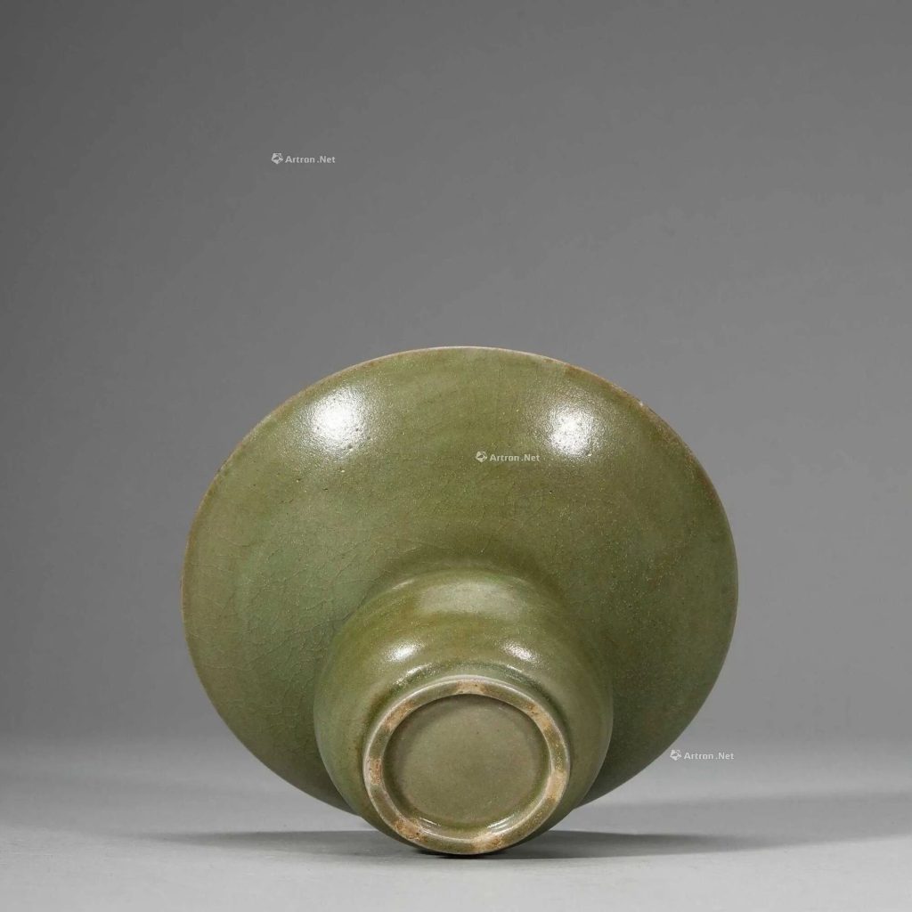 - 釉色:釉料以石灰石和瓷土配製,高溫還原焰燒製後呈現青中泛黃(艾色)或青綠色,釉面溫潤如玉,局部因窯溫不均出現「鱔魚黃」或「蟹殼青」。釉層較薄,呈半透明狀,積釉處如蟬翼般輕薄通透,部分器物因氧化形成「無中生水」的視覺效果(釉面泛水光)。