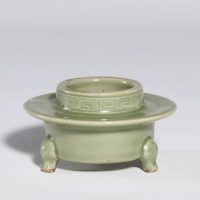 - 備註:雖未明確標註「夜學香爐」,但其貼塑工藝與小巧尺寸與同類器物相似,反映元代龍泉窯香爐的高端工藝水平。
