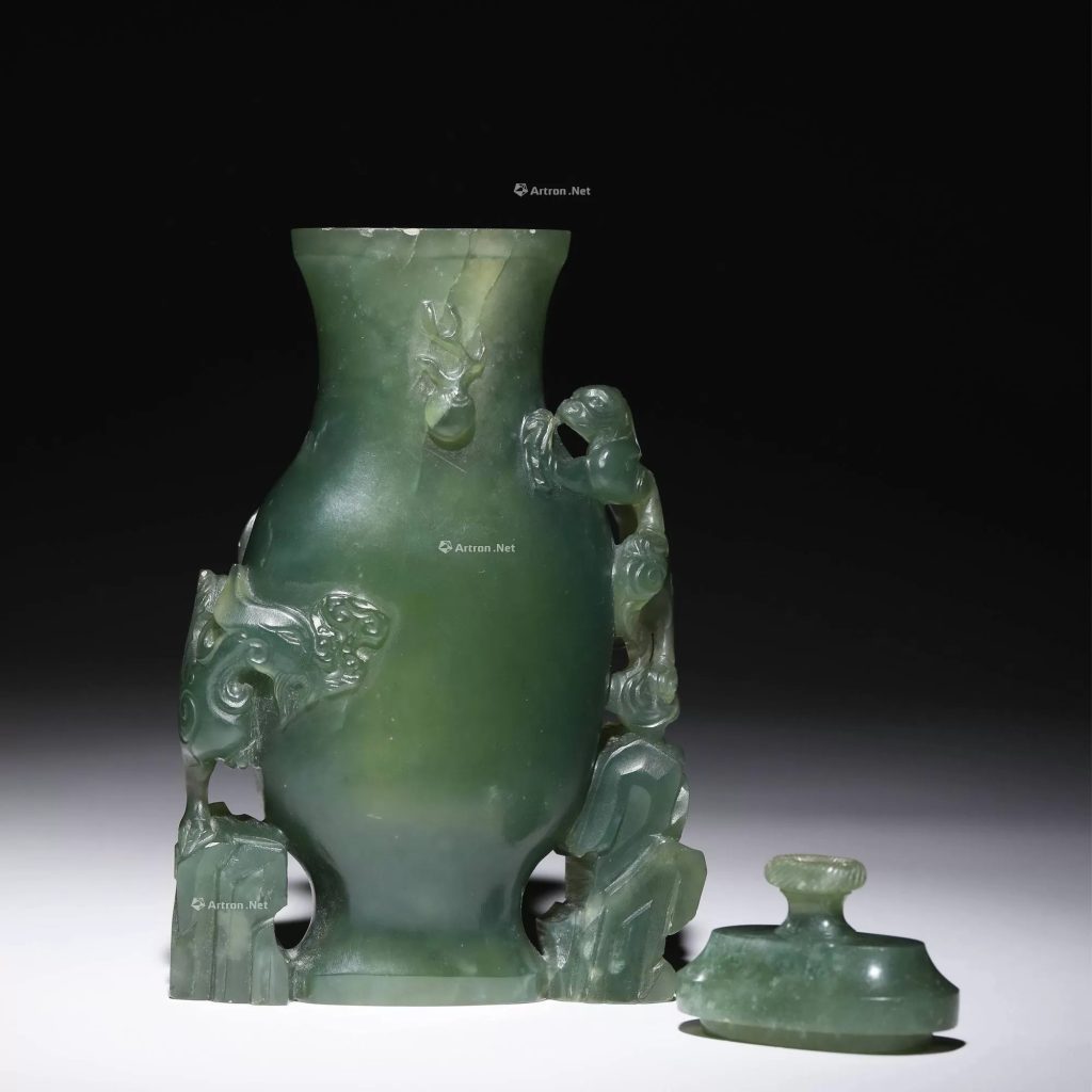 - 拍品名稱:清・碧玉雕龍紋雙耳蓋瓶