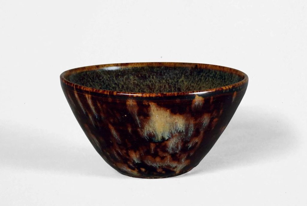- 黑釉底襯:外壁通體施黑釉,釉色如夜空深邃,局部因窯變形成褐色斑點或流紋,稱為「玳瑁釉」或「虎斑釉」。