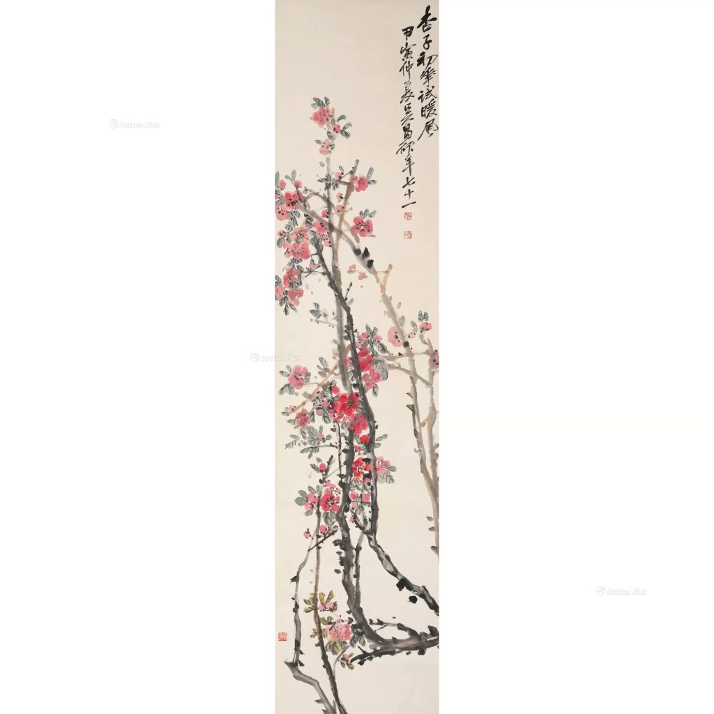 吳昌碩為晚清民初畫壇的代表性領袖之一,擅長以詩、書、畫、印「四絕」融於一體,其創作的杏花題材作品,兼具金石氣韻與文人意趣,在藝術史與拍賣市場中均佔有重要地位。以下是詳細介紹及相關成交紀錄: