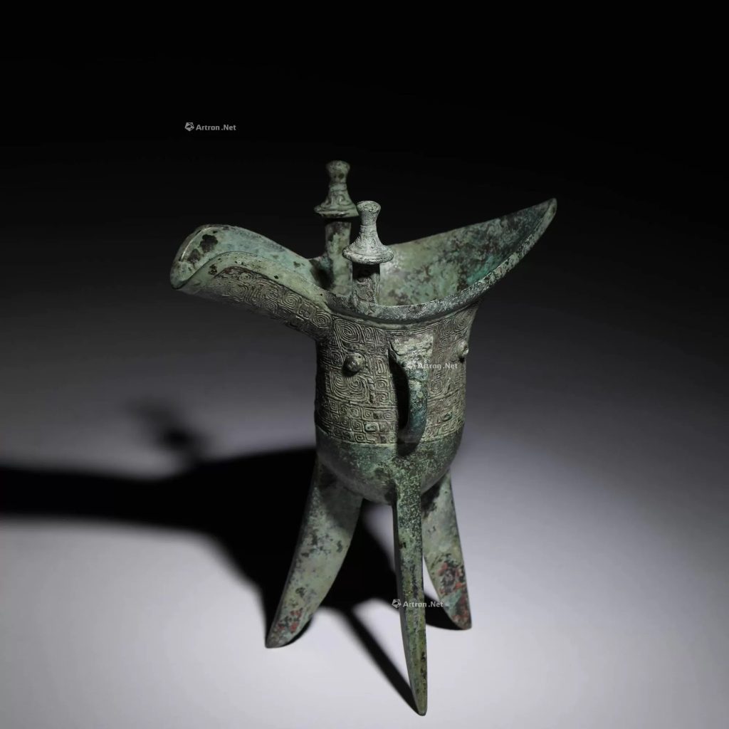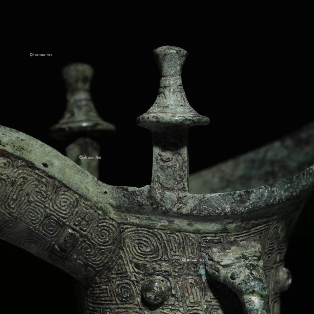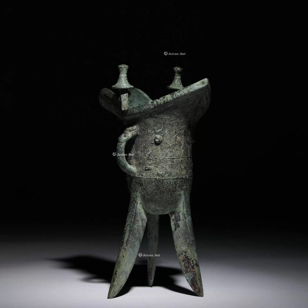 西周 青銅饕餮紋臣辰父乙爵 日本東京中央古玩珍藏專場 2019 年 高 21cm,爵柱側刻「父乙」銘文,鋬內刻「父乙臣辰爵」 JPY 7,000,000 – 8,000,000 未公開最終成交價