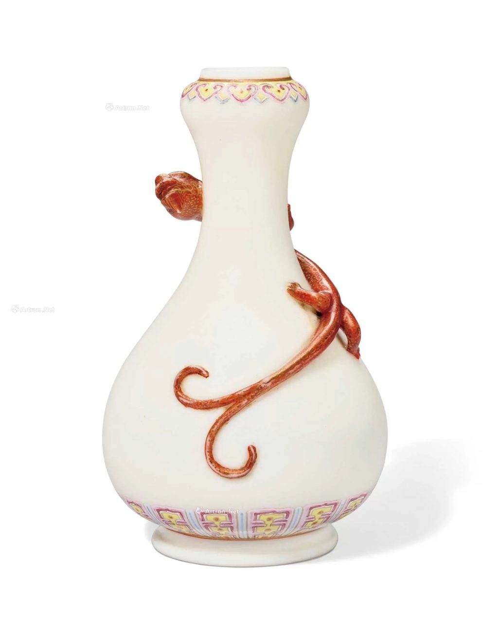 - 細長頸:頸部細長修直,連接蒜頭口與瓶肩,部分可能略帶束腰設計,形成「細頸丰肩」的優美曲線;頸部是堆塑螭龍的核心區域,螭龍造型與頸部弧度契合,使器型與裝飾融為一體。