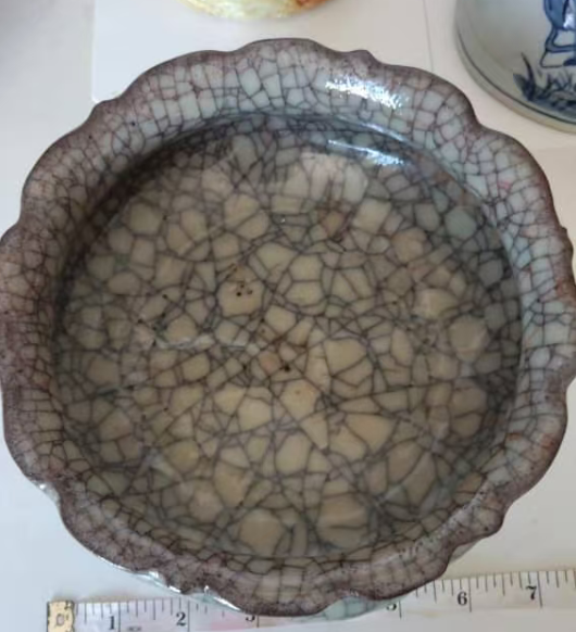 哥窯是宋代「五大名窯」之一,以「開片」紋理和古樸釉色著稱。這件葵口洗屬於典型的哥窯器型: