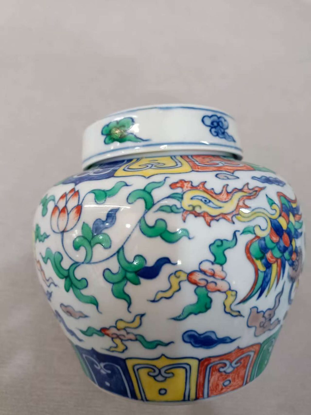 - 紋飾:常見繪有海馬、海水、翼龍、纏枝蓮等紋樣,色彩搭配清新雅致,如這件罐上的鳳鳥、纏枝蓮、雲紋,線條細膩流暢,圖案充滿宮廷御用的華貴感。