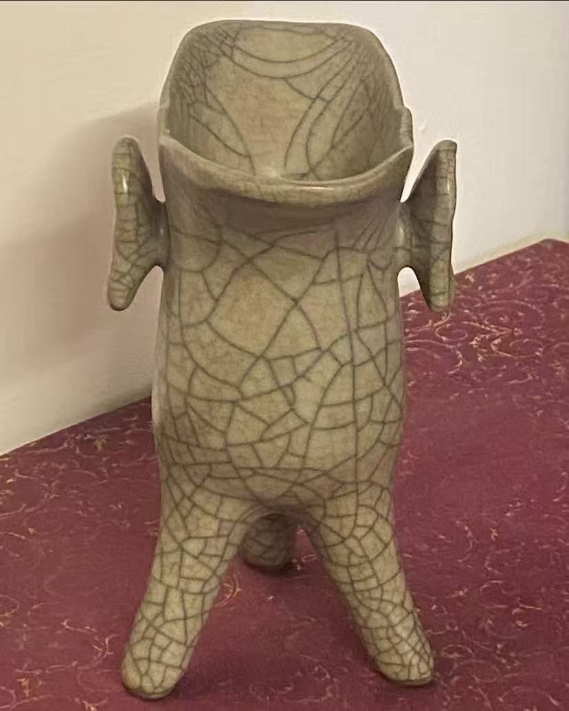這是一件宋哥窯雙耳三足花口尊,屬於宋代哥窯的典型器物,是宋代「五大名窯」中哥窯的代表作品之一: