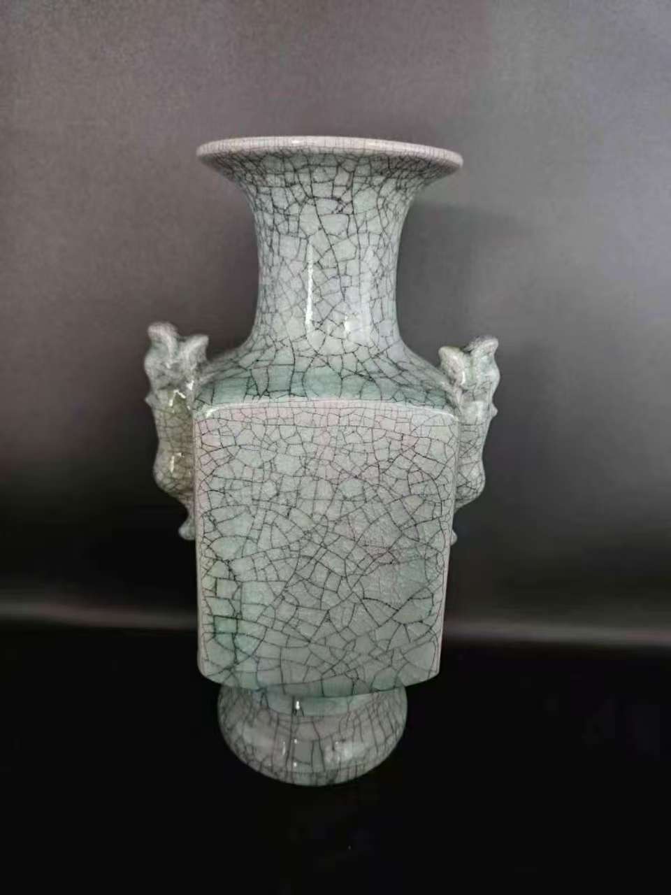這是一件宋崇寧元年清涼寺製哥窯雙耳方瓶,屬於宋代哥窯的典型宮廷御用器物,是「五大名窯」中哥窯的精品代表: