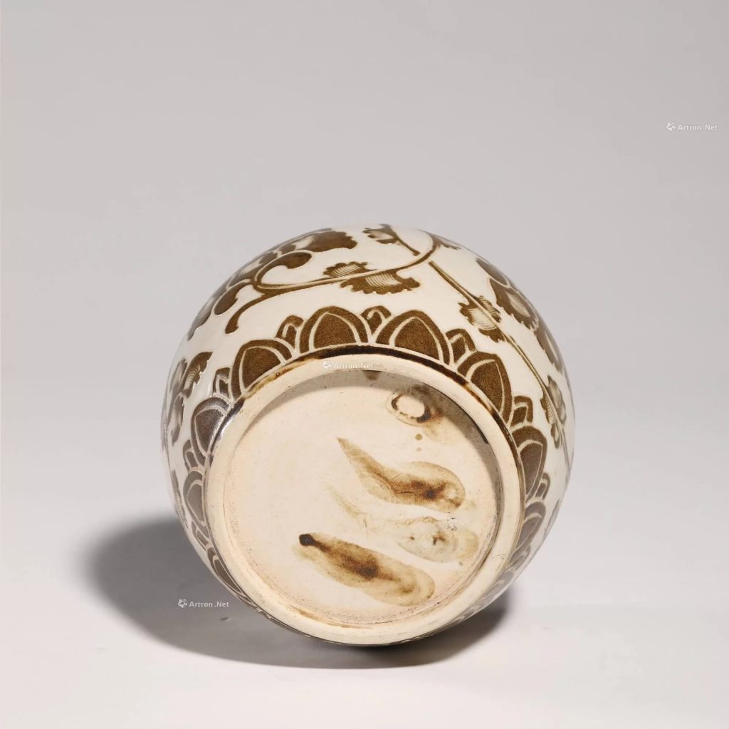 - 紋飾:腹部以「刻蓮花紋」為核心,常見單朵蓮花綻放、纏枝蓮或蓮池小景,花瓣舒展,葉脈清晰,刻劃線條流暢有力,部分結合「剔花」工藝(剔除花紋周圍的胎體,使花紋凸起),形成深淺對比,增強立體感。蓮花作為宋代民間流行的吉祥紋樣,象徵「潔淨吉祥」,體現百姓對美好生活的嚮往。