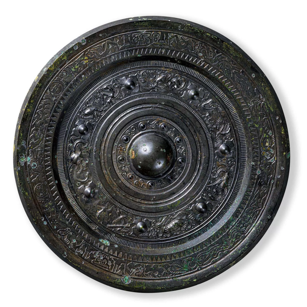 - 紋飾層次:多為「三層布局」—— 中心為鈕(常為圓形弦紋鈕),中層為神獸主紋,外層為邊飾(常見雲雷紋、齒紋、蟠螭紋),層次分明,繁而不亂。