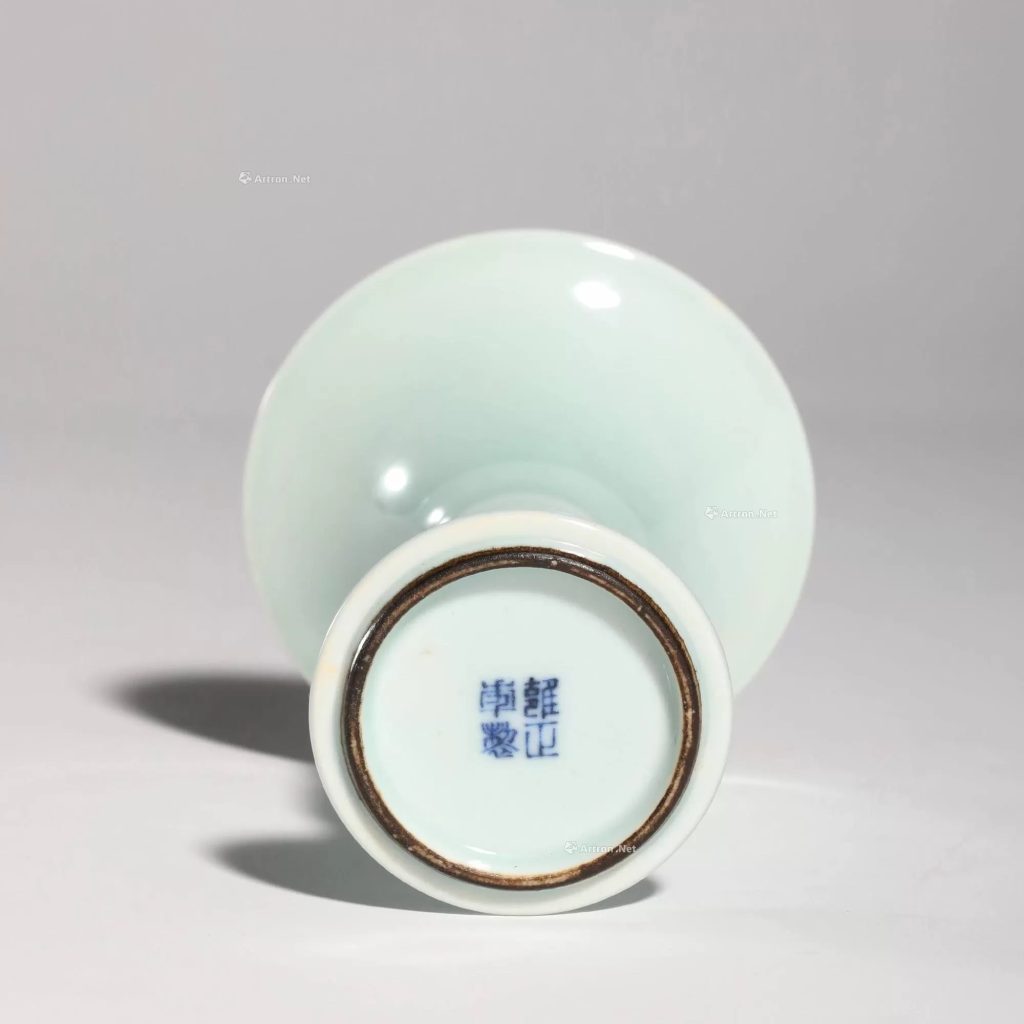 - 拍品名稱:清雍正 豆青釉觚形尊(無弦紋,素麵,底部青花六字款)