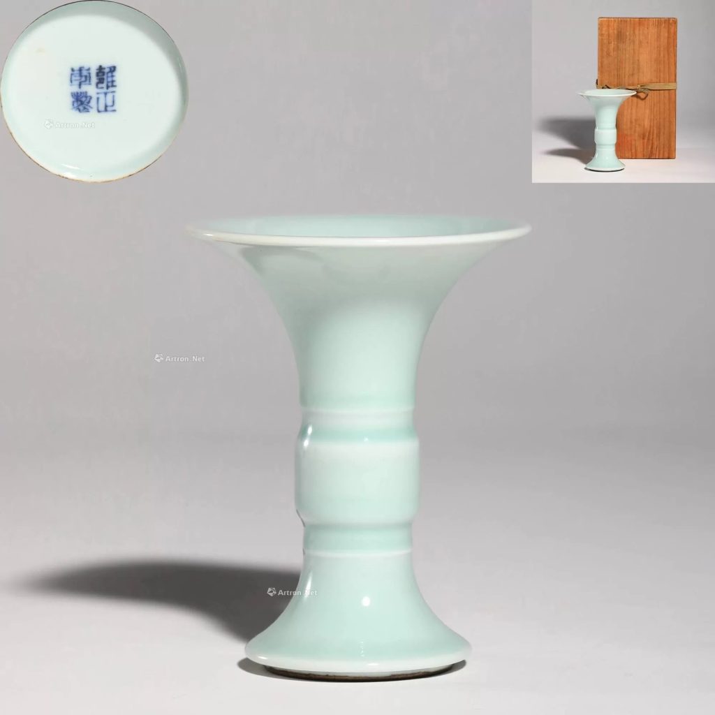 - 備註:此件為雍正官窯標準器,來源權威且品相完美,創下豆青釉觚形尊的拍賣紀錄之一。