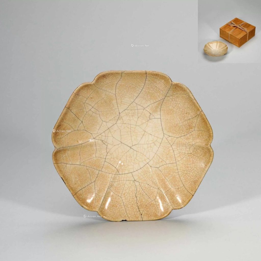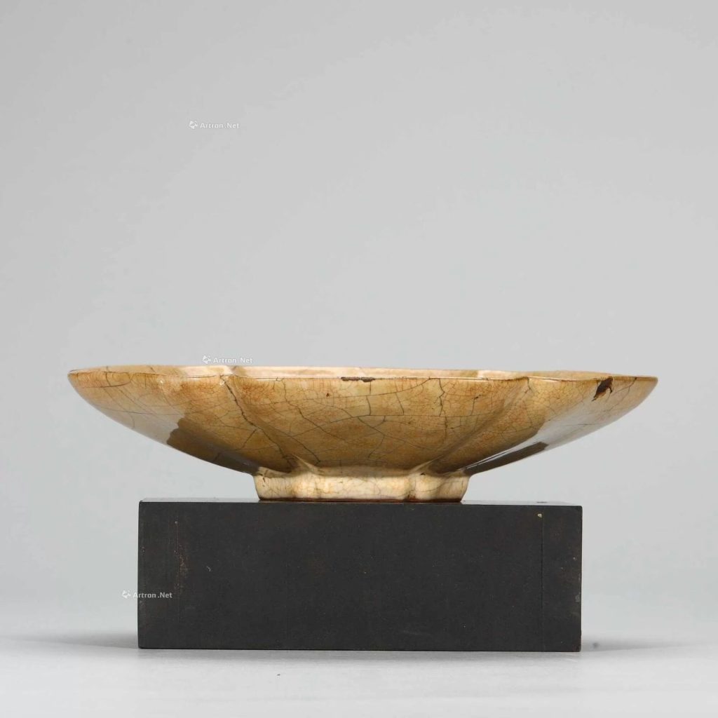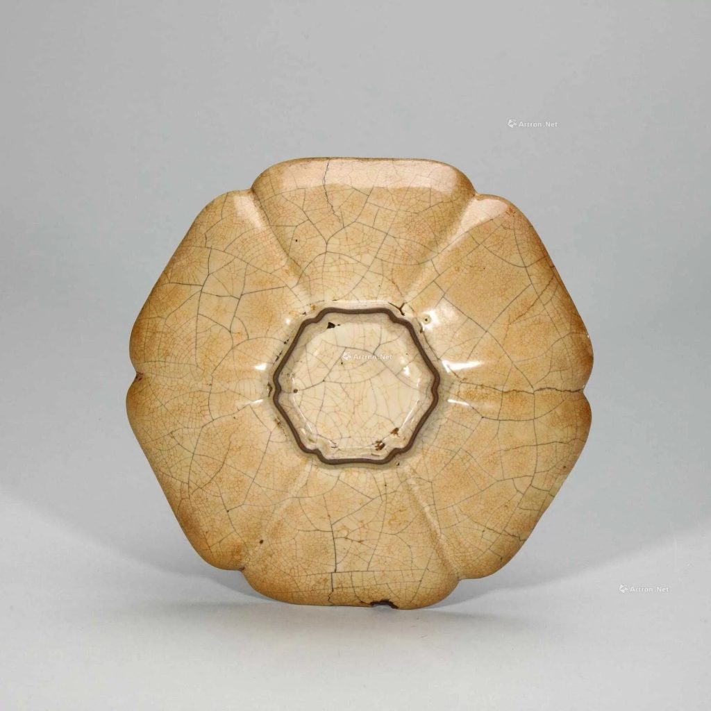 - 典型形制:盤呈六瓣葵花形,敞口微斂,弧腹坦底,矮圈足。例如,北京故宮藏宋哥窯青釉葵瓣口盤高 4.1cm,口徑 20.2cm,腹壁凸棱與葵瓣口對應,圈足隨形起伏,體現「一器一型」的匠心。